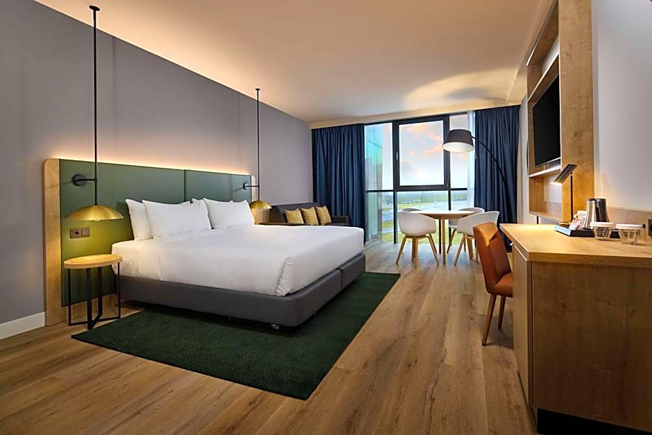 A mini-fridge, tea/coffee making facilities and 55-inch LCD flat-screen TV come as standard in this spacious air-conditioned room. It also comes with a king-size bed, an ergonomic desk and a bathroom with a bath or shower, hairdryer and free toiletries and has hard flooring in the room.